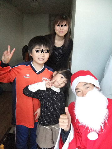 プレゼントを貰って、写真とってもらって、サンタさんは帰っていきました。。。